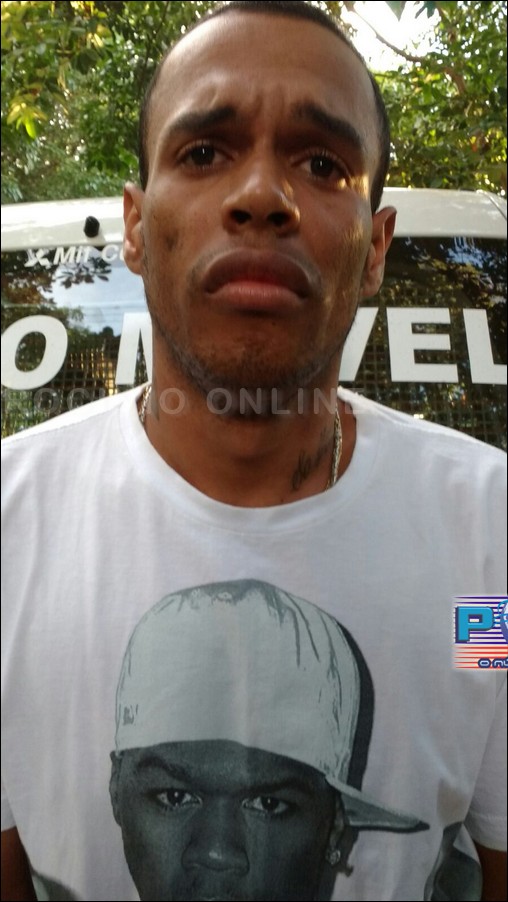Patrocínio pela comunidade, os militares depararam com o autor Adriano de Souza Brito, 21 anos, com passagens por roubo, formação de quadrilha e porte ilegal de arma de foto, saindo de sua residência. Ao notar a presença dos policiais, este se mostrou visivelmente incomodado, sendo procedida abordagem e localizada, no bolso de sua calça, uma munição intacta cal. 28. Posteriormente, a guarnição fez contato com sua mãe, a qual franqueou a entrada e buscas na residência, sendo que no quintal, foi encontrado um pé de maconha, com aproximadamente três metros de altura.
