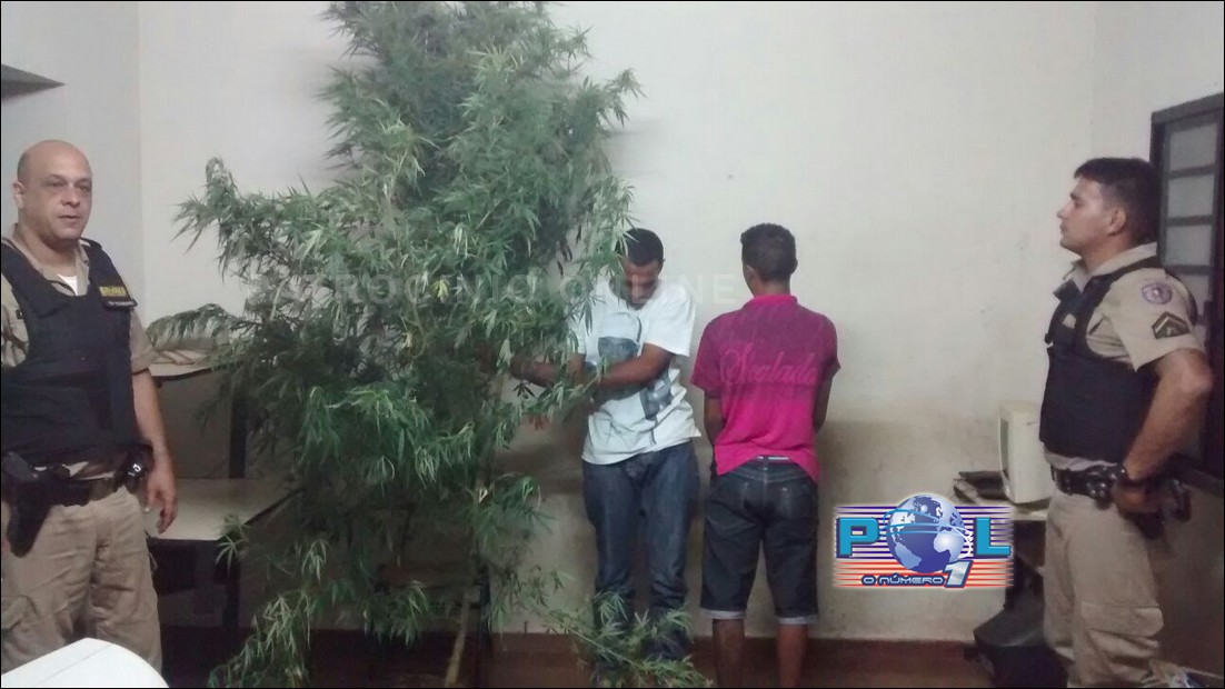 Os militares do Tático Móvel apreenderem os materiais ilícitos e o pé de maconha, do menor infrator e prendeu adriano ques foram apresentados na delegacia de plantão para demais providências legais.