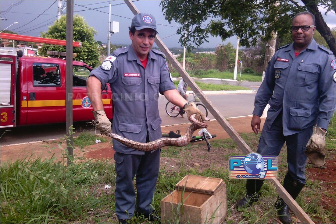 O Corpo de Bombeiros foi acionado pela segunda vez em uma semana para capturar mais uma enorme Jibóia em frente ao 46º Batalhão de Polícia MIlitar. A serpente com cerca de 1,5 metro de comprimento que estava bem na entrada, correndo o risco de pelo menos assustar alguém. Os sargentos Alessandro e Arthir usando equipamentos próprios e luvas capturaram o animal e o soltaram numa área de reserva próxima a Patrocínio (MG).