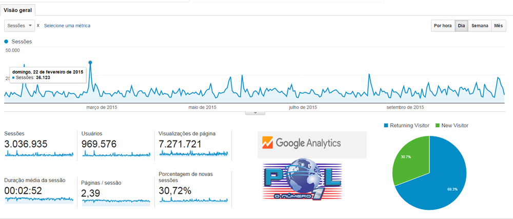 Nos 10 primeiros meses de 2015 o P.O.L. teve 3.036.935 milhões de visitas, 7.271.721 visualizações de páginas