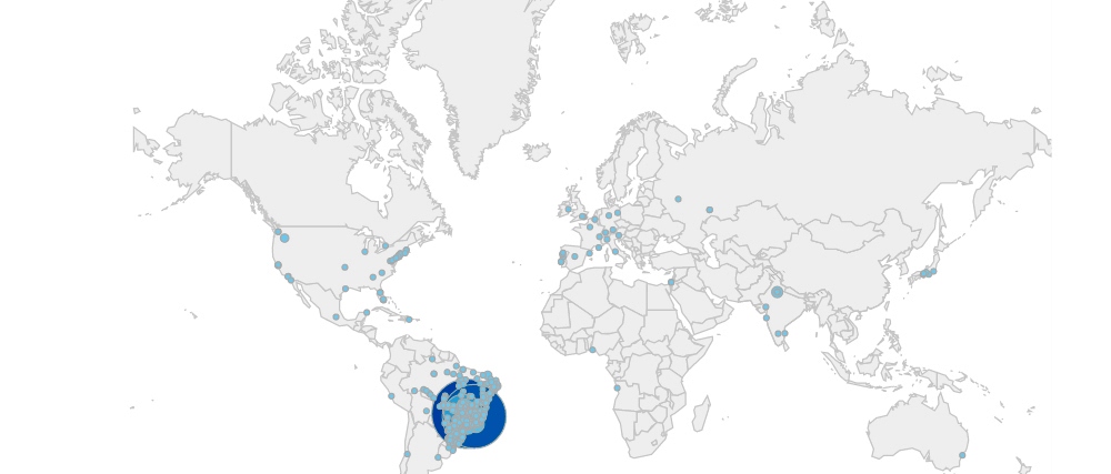 A audiência do Patrocínio Online não se resume apenas à cidade, mas em toda região do Alto Paranaíba e Triângulo Mineiro e também no exterior como é mostra no mapa abaixo.
