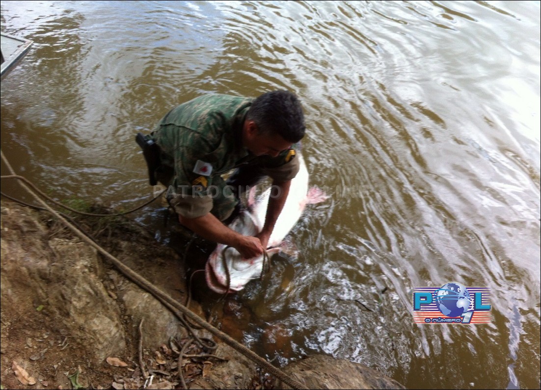 A mesma equipe, encontrou as margens do Rio Paranaiba, um peixe Surubim de 30 quilos, que estava amarado pela boca uma corda e que foi capturado indevidamente por um pescador com uso da pinda, que é proibido por lei e considerado um "petrecho predatório".
