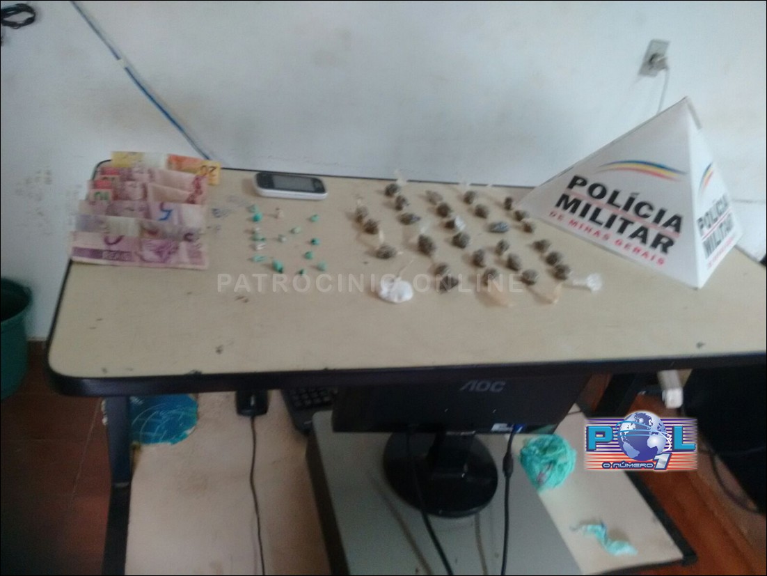 Em Patrocínio (MG), no dia 5, as 15h30m, a Polícia Militar recebeu denúncias anônimas relatando que havia três homens comercializando drogas no entorno do terminal rodoviário. Com base nas características recebidas os militares deslocaram até o local e localizaram dois indivíduos menores e um maior de idade. Com eles foram localizadas cinco pedras de crack, um aparelho celular e a quantia de cinco reais em cédulas diversas. Com o auxílio da cadela Pandora foi realizada busca, sendo que debaixo de uma planta, próximo aos suspeitos, foi localizado um embrulho contendo vinte e uma porções de maconha. Em continuidade as buscas, em meio à outra planta foram localizadas mais seis buchas de maconha, dez pedras de crack e um invólucro contendo cocaína. Os dois suspeitos W.S.A., 21 anos e um menor de 16 anos foram presos/apreendidos e encaminhados para a Delegacia juntamente com os materiais.