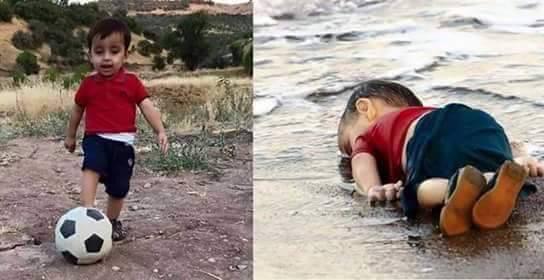 O garoto sírio Aylan Kurdi, de três anos, morreu afogado ao tentar chegar à Grécia, depois de uma colisão entre barcos que afundaram no Mar Egeu. O irmão de Aylan, Galip, de 5 anos, e sua mãe, Rehan, de 35, também se afogaram. A imagem correu o mundo, comoveu a todos,se tornou símbolo desta tragédia humanitária... mas não sensibilizou os corações de aço dos senhores da guerra...