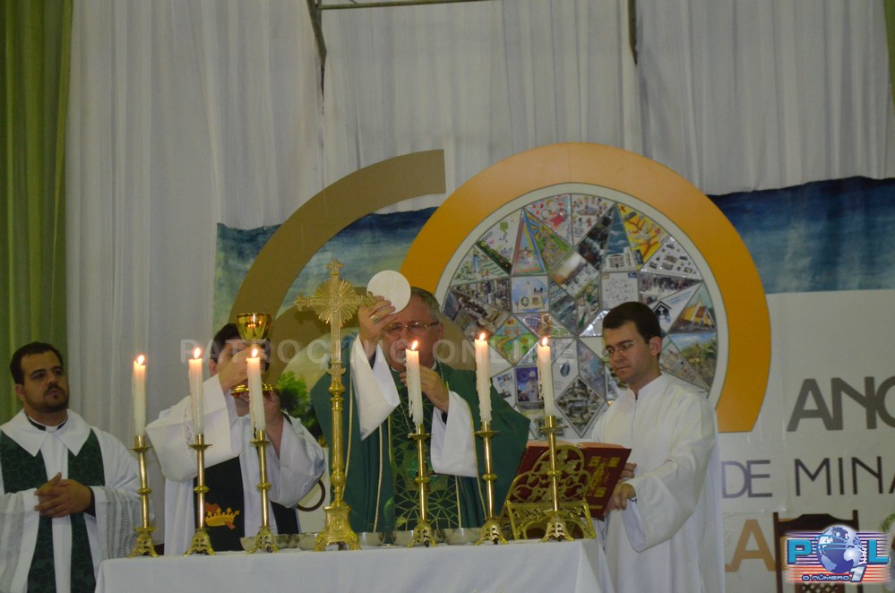 Finalizando a Santa Missa celebrada por Dom Cláudio que abordou sobre a Centralização de Deus na Catequese e do estado permanente desta missão: Anunciar a Palavra de Deus, dar testemunhos, avançar mais e caminhar mais.