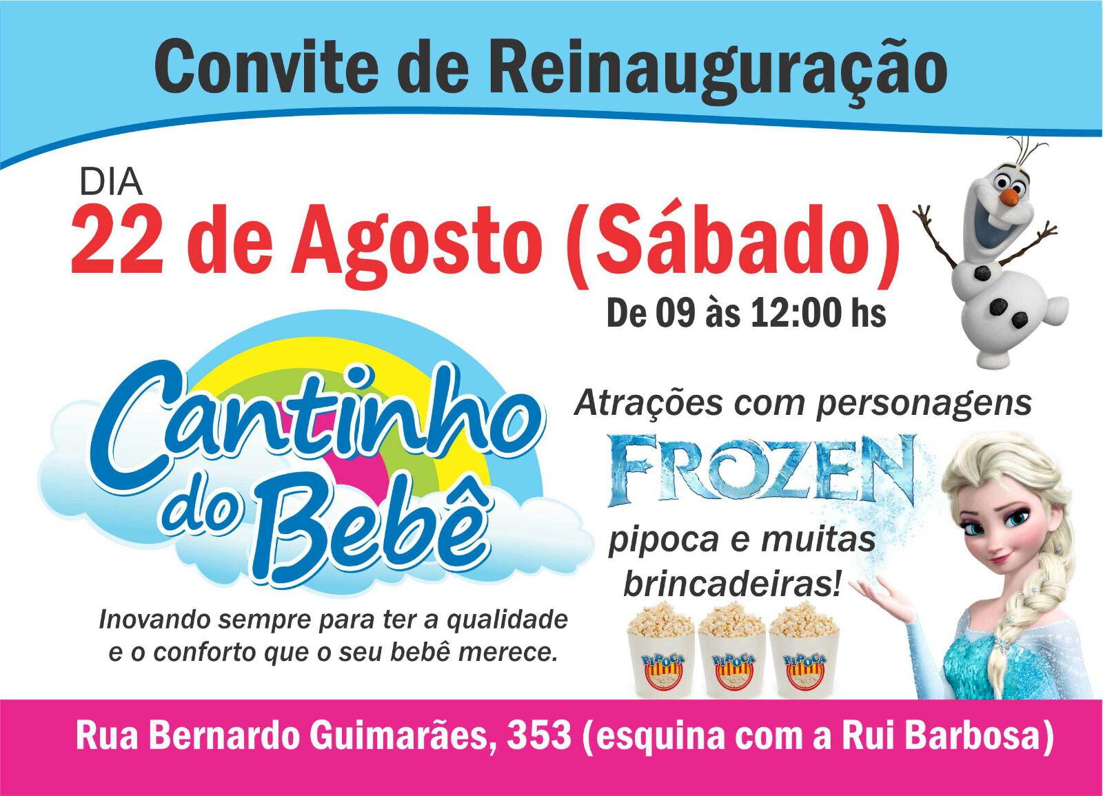 Você esta convidado (a). leve seus filhos pois terá várias atrações com personagens do Frozen, pipocas e muitas brincadeiras, na Rua Bernardo Guimarães esquina com a Avenida Rui Barbosa, Centro de Patrocínio (MG).