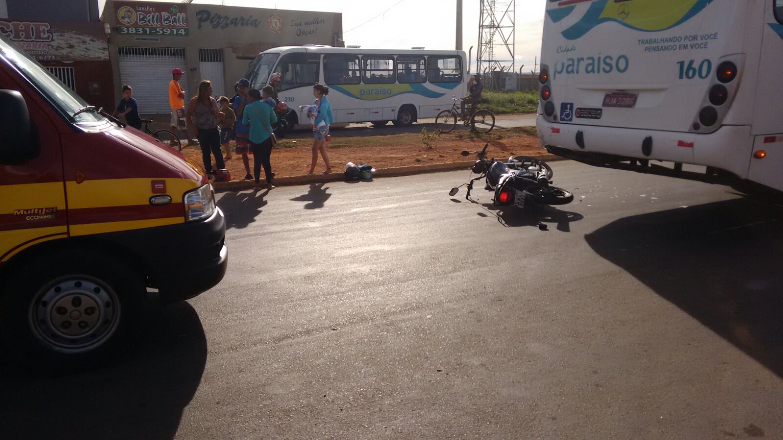 Segundo versão dos ocupantes da motocicleta, o ônibus que estava a frente fez uma parada repentina momento em que houve o choque.
