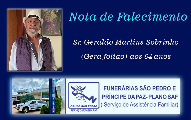 Faleceu hoje em Patrocínio, Geraldo Martins Sobrinho (Gera folião), aos 64 anos.