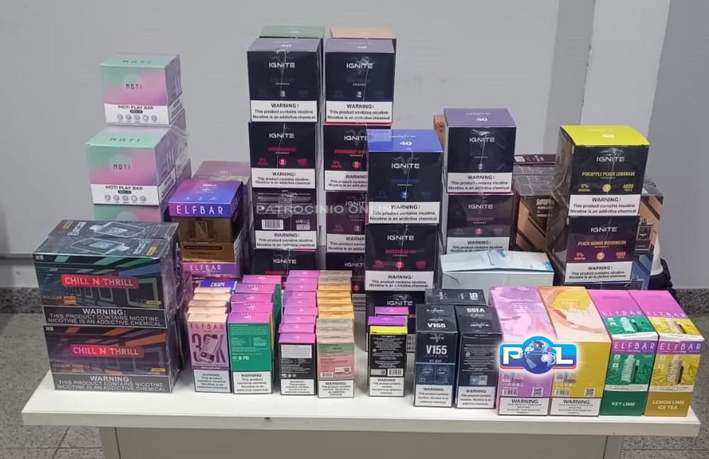 Durante buscas no veículo, os policiais localizaram 535 cigarros eletrônicos, que o casal informou ter adquirido na cidade de São Paulo e que transportavam para Vitória da Conquista/BA.