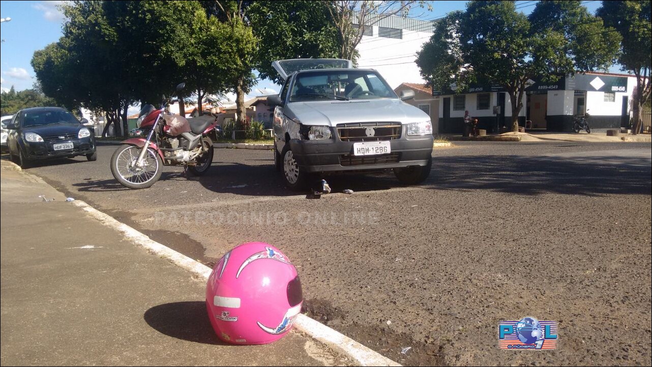 A Unidade de Resgate dos Bombeiros foi acionada e no local encontrou a condutora da motocicleta caída em via com suspeita de fratura nos dedos do pé esquerdo e escoriações no rosto.