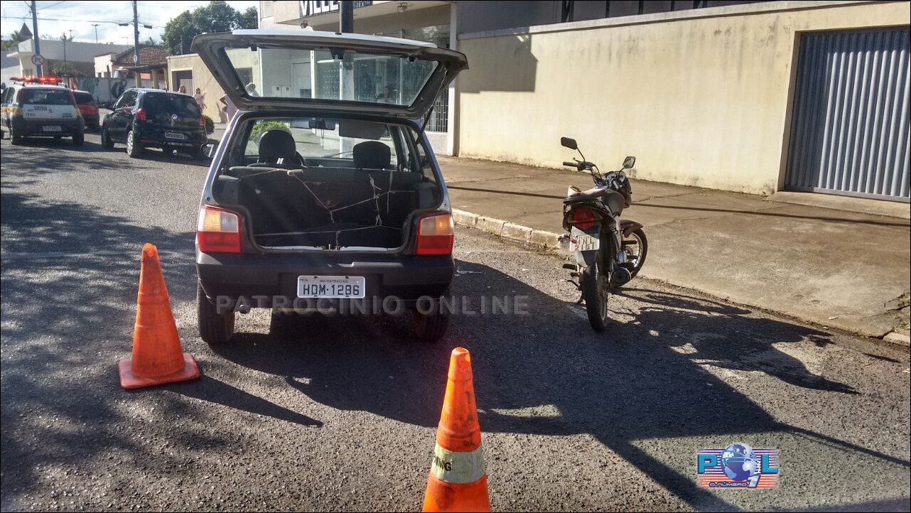 `Às 14h24m, na Avenida José Eloi dos Santos aconteceu na Avenida José Eloi dos Santos, na confluência dos Bairros Constantino com Boa Esperança um acidente envolvendo uma motocicleta e um veículo de passeio, com a condutora do primeiro ferida. Segunda testemunhas a senhora L.P.G. , 49 anos conduzia a motocicleta Honda Titan placa HNL 21 51 pela Avenida e a senhora M.L.A.B., 51 anos ao convergir com o Fiat Uno placas HDM 1286 a esquerda, colidiu com o veículo duas rodas.