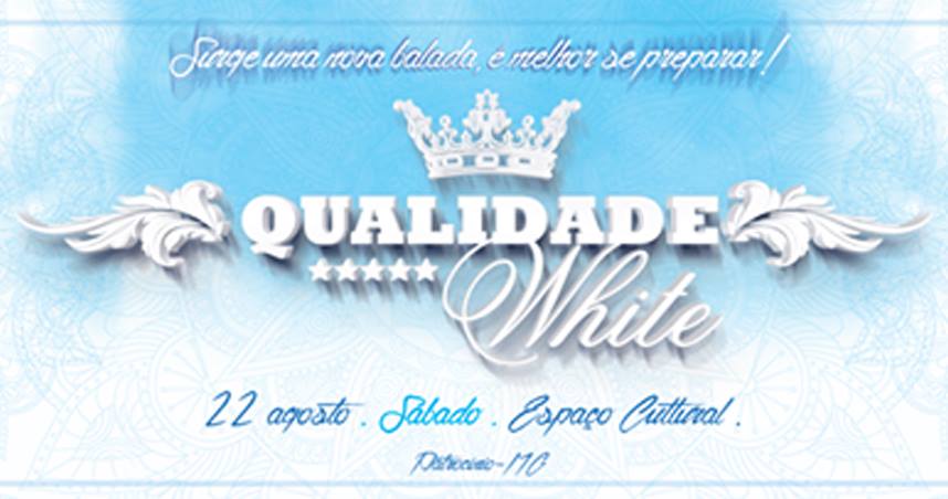 A Qualidade White 2015 é um convite a brindar a sua liberdade em um ambiente interativo, capaz de proporcionar experiências únicas e marcantes. Já pode ir preparando sua roupa branca, porque esta balada vai até o amanhecer.