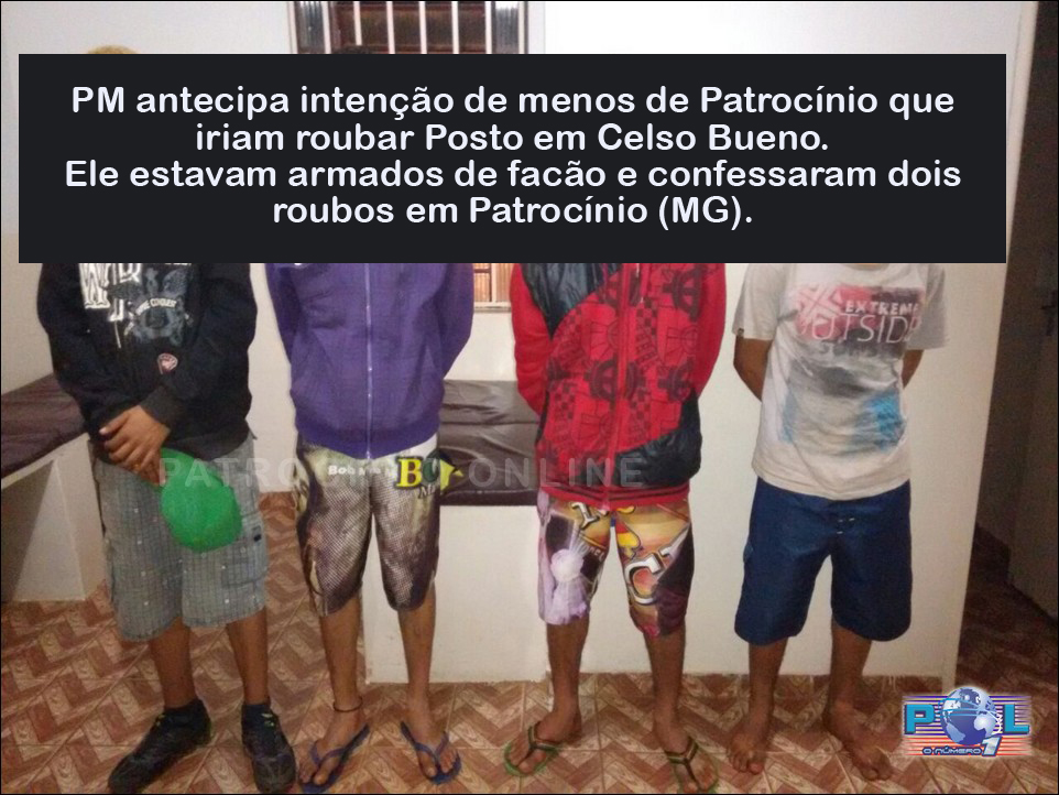 Os menores menores afirmaram que são de Patrocínio (MG) e confessaram ter realizado um roubo a um bar em nesta cidade há alguns dias e um furto a uma fazenda na região "dos Pedros".