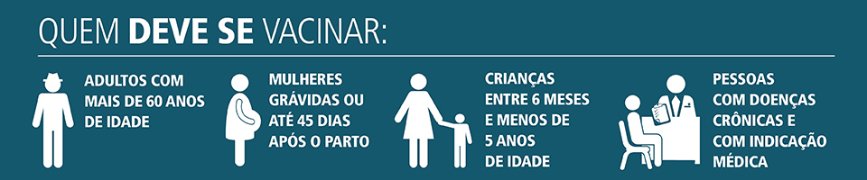 Segundo o Ministério da Saúde, devem ser vacinadas as crianças de 6 meses a 5 anos, idosos, trabalhadores da saúde, povos indígenas, gestantes e mulheres até 45 dias após o parto, além de detentos e funcionários.