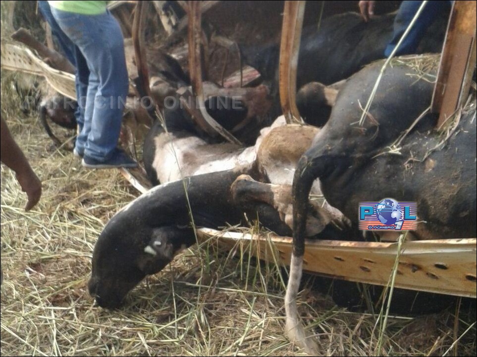 Uma equipe da Polícia Militar Rodoviária, composta pelo Sargento Marcos e Soldado Machado foi acionada para atender um acidente na Rodovia MG 188, km 305 entre Vazante e Coromandel (MG), num local conhecido como Serra do Zico. No local os militares depararam com um caminhão “gaiola” placas DBM 9562, carregado com 23 cabeças de gado, caído em um barranco. Segundo informações de testemunhas o condutor perdeu o controle, saiu da pista e o veículo capotou várias vezes.