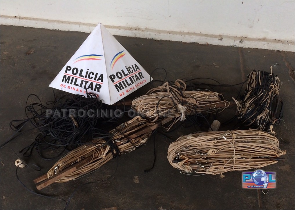 Uma equipe do Pelotão de Polícia do Meio Ambiente de Patrocínio, composta seu comandante, Tenente Lima e Sargento Fábio, durante patrulhamento aquático, foi desencadeada operação combate a pesca predatória no reservatório de Nova Ponte e fiscalização de pescadores . Nesta ação foram apreendidas 04 redes de pesca, 25 pindas, 05 espinhéis totalizando 146 anzóis, registros em andamento com previsão de lavratura de 03 Reds e as devidas multas aos infratores abordados.