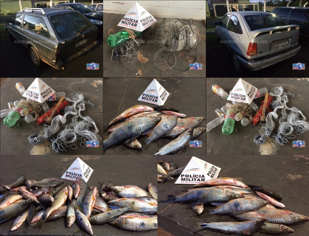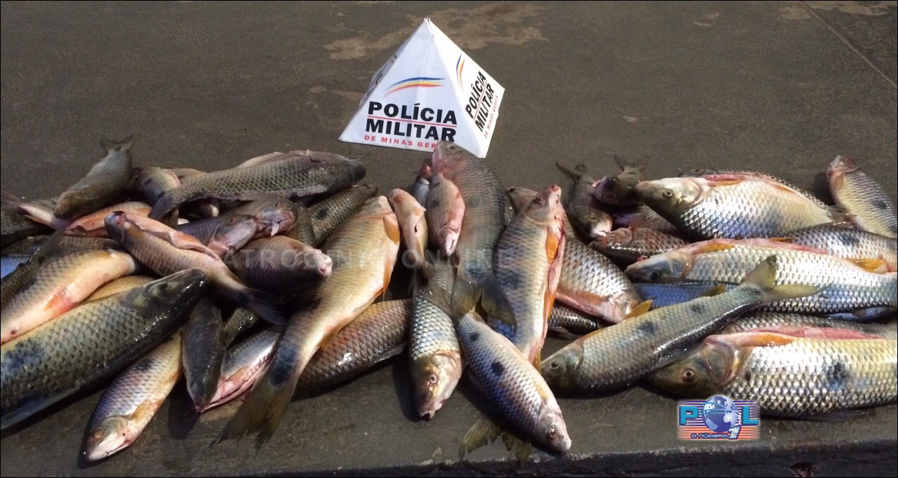 dos mencionados veículos, foi encontrado aproximadamente trinta e quatro quilos de pescado (Piau, Piapara e Tilápia). Por se tratar de peixes capturados no lago de Nova Ponte, que possui uma portaria especifica tanto pra captura, quanto para o transporte os pescadores foram presos em flagrante delito. O pescado foi apreendido e para o registro foi solicitado uma guarnição da PM do Meio Ambiente composta pelo Sargento Willian e Soldado Feliciano.