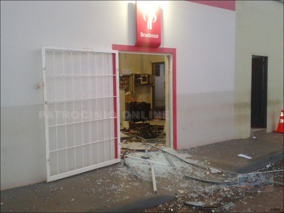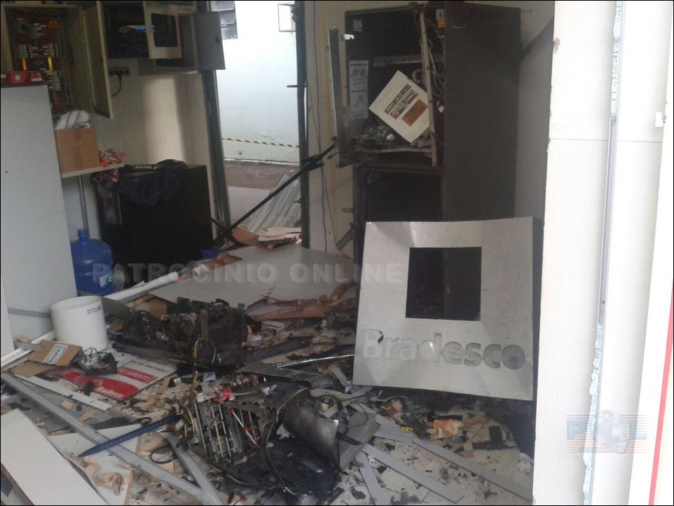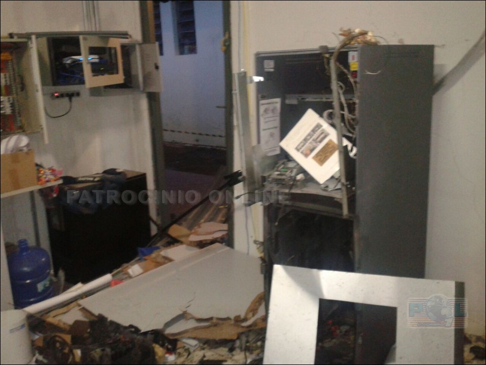 assaltantes foram ate o caixa eletrônico e o explodiram por duas vezes.