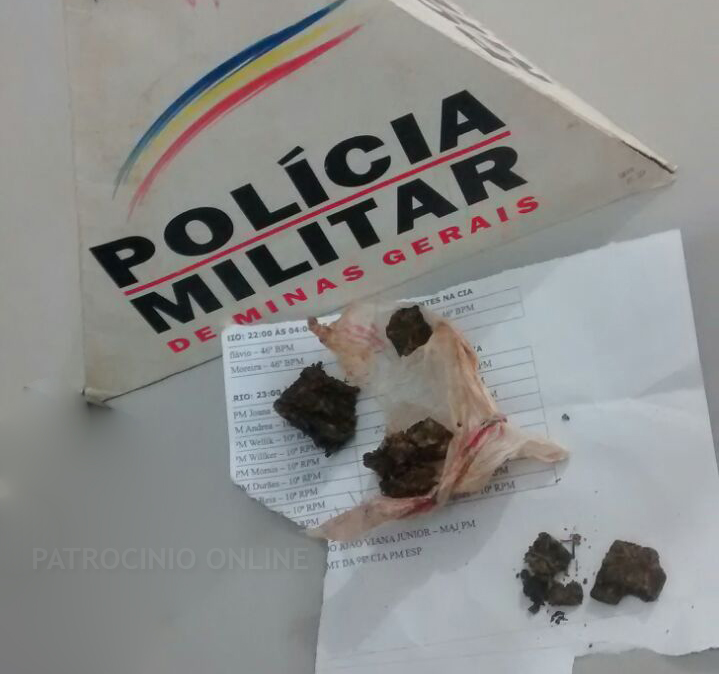 Em Coromandel (MG), no dia 13, sexta-feira, pouco depois da meia noite, policiais militares receberem denúncia anônima informando que um menor infrator de17 anos, natural de Patrocínio (MG), estaria comercializado drogas na Avenida José Caetano Filho nº 307, bairro Sagrada Família, em frente a Escola Municipal Lárcio de Sairre. Os policiais procederam à abordagem e localizaram 05 buchas semelhantes a maconha com o menor infrator, que foi apreendido em flagrante por tráfico de drogase apresentado na delegacia de plantão.