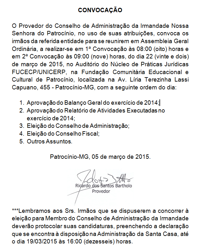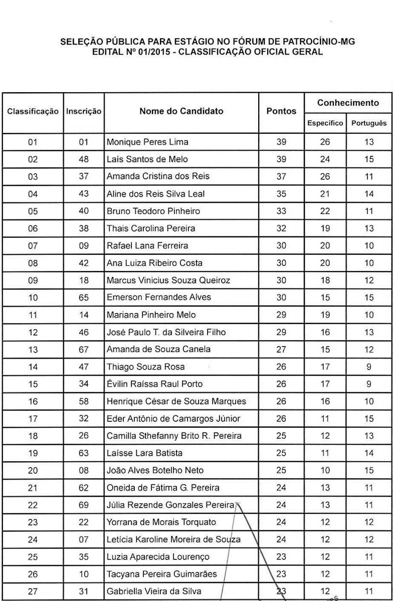 Edital nº 01/2015 realizado pela Direção do Foro da Comarca de Patrocínio.