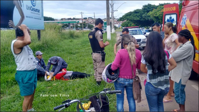 No início da manhã de segunda-feira, dia 2 de março, Avenida Altino Guimarães, próximo a Praça da Morada Nova, seguiam na mesma direção um veículo de passeio, uma motocicleta e uma bicicleta, quando o condutor da moto que passava pelo meio, esbarrou na bicicleta derrubando a ciclista, que sofreu um corte na cabeça e escoriações. A Unidade de Resgate dos Bombeiros esteve no local, orientou, prestou os primeiros socorros e conduziu a ciclista para atendimento médico no PS Municipal.