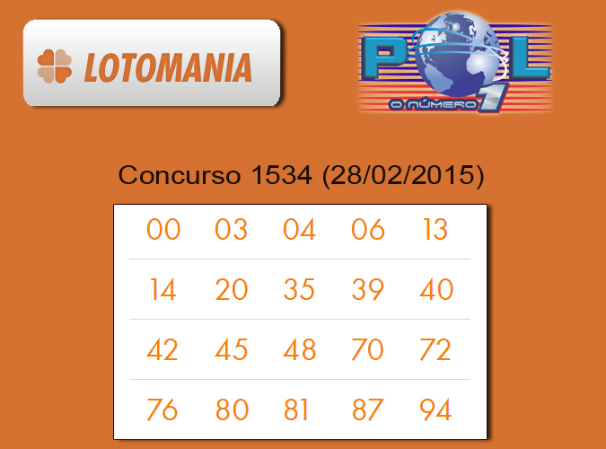 O Concurso 1534 (28/02/2015) da Lotomania, no sorteio realizado no Caminhão da Sorte em IBIRUBÁ, RS, acumulou. A estimativa de prêmio para o próximo concurso é de R$1.000.000,00 milhão de reais