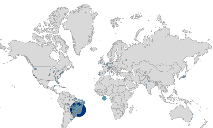 O Patrocínio Online tem abrangência mundial como mostra o "print" do Google Analytics, mas com audiência acentuada nas microrregiões do Triângulo Mineiro Mineiro e nas regiões Sudeste e Centro Oeste.