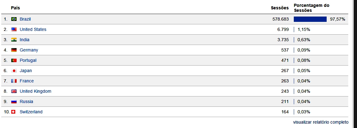 Depois do Brasil, Estados Unidos é o país em que o Patrocínio Online têm mais visitantes. O "print" abaixo abaixo é dos primeiros 50 dias de 2015.