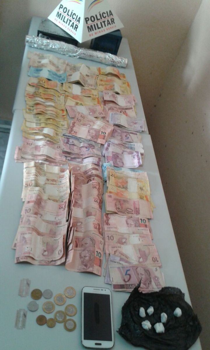 No dia 09 de janeiro de 2015, por volta de 06 horas, a Polícia Militar realizou Operação Policial de cumprimentos de Mandados de Busca e Apreensão na cidade de Campos Altos (MG). Os policiais estiveram na Rua Getúlio Vargas, bairro Camposaltinho, local este alvo de várias denúncias de tráfico de drogas. Durante a busca domiciliar foram localizados no interior da residência aparelhos celulares, um toca CD automotivo, dentre outros objetos. Na parte externada da residência em uma lona no lote foi encontrado 06 buchas de maconha. Na residência se encontrava o autor D.L, 25 anos e a autora L.C, 22 anos. Durante busca pessoal nos infratores foi localizado com o rapaz a quantia de R$ 369,00 (trezentos e sessenta e nove) reais em dinheiro. Ele relatou que não havia mais dinheiro na residência, contudo, em continuação as buscas, foi encontrado um pequeno cofre escondido debaixo de um guarda roupas, que continha o valor de R$ 4.550,00, (quatro mil quinhentos e cinquenta) reais em notas variadas. Diante das evidências os suspeitos foram presos em flagrante delito e conduzidos a delegacia de Campos Altos.