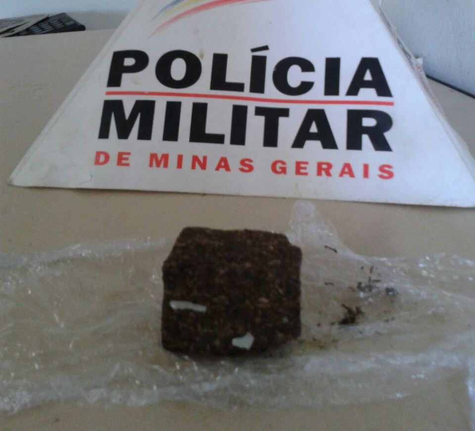 Durante as buscas, os militares localizaram um tablete de maconha escondido no guarda roupas..