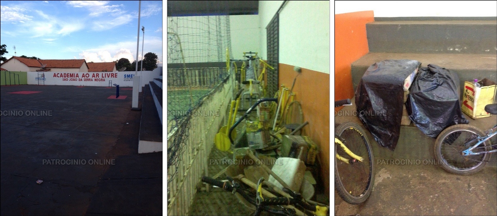 Uma leitora do Patrocínio Online, residente no distrito de São João da Serra Negra (MG) que preferiu ter seu nome preservado no anonimato, enviou via Whatsapp (34) 8719-5701 do P.O.L. uma denúncia reclamando que os equipamentos da Academia ao Ar Livre que vieram do governo do estado e o cimento doado pelo CDC estão deteriorando sem que sejam instalados.