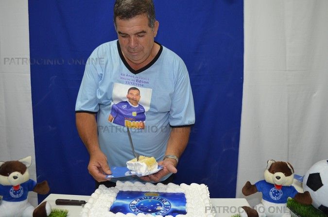 O bolo, não poderia faltar, é claro, a bandeira do Cruzeiro, de quem Edson é torcedor.