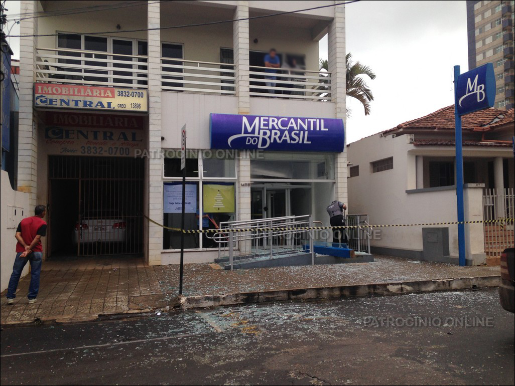 Nesta madrugada dessa quinta-feira, dia 11, quatro homens fortemente armados, todos com os rostos cobertos por "balaclava" , explodiram o caixa eletrônico do Banco Mercantil do Brasil, situado na Rua Presidente Vargas, 1455, centro de Patrocínio (MG).
