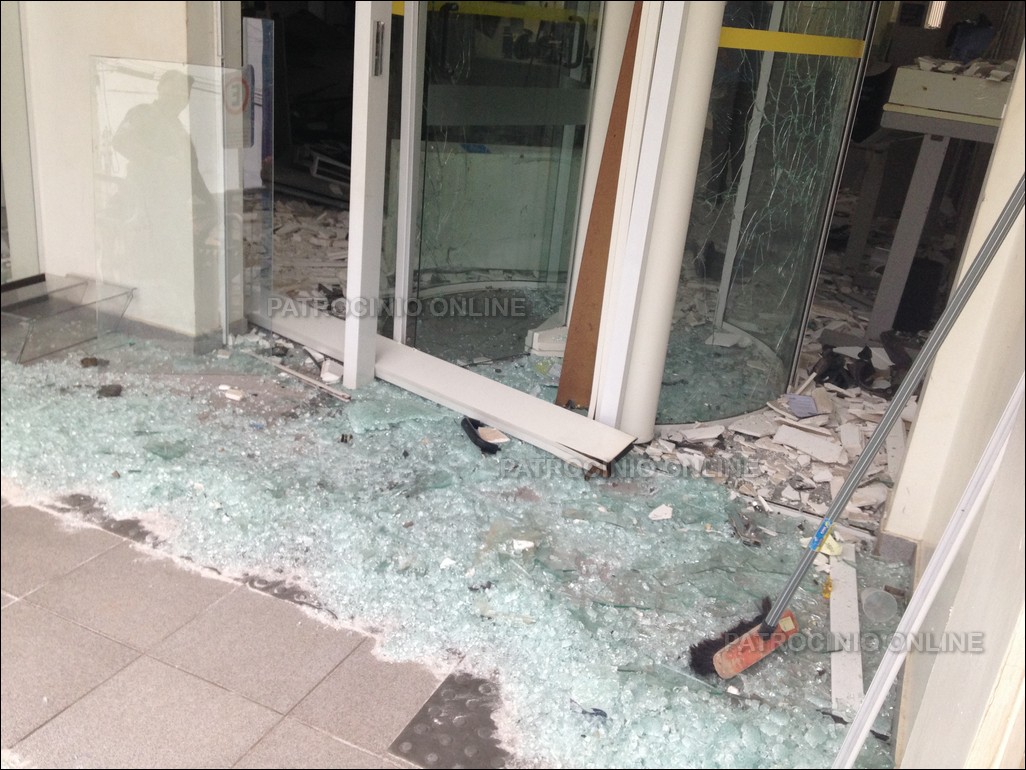 e fuga. Os que adentraram o banco arrombaram as portas de vidros e colocaram os explosivos.