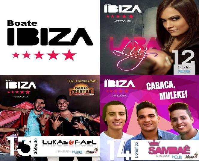 Na sexta-feira, 12, a Ibiza traz a cidade a DJ Lara Luz tocando o melhor da música eletrônica, no sábado, 13, é a vez da dupla sensação do Caldas Country 2015, Lukas & Fael e no domingo para fechar com chave de ouro um pagodinho diferenciado com o grupo Sambaê de Uberlândia. Todos os dias, o melhor ambiente, estrutura e as melhores bebidas.