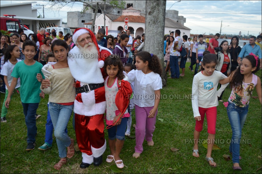 Na noite de domingo, 7 de dezembro, na Praça Matriz aconteceu a chegada do Papai Noel que fotografou com as crianças, distribuiu balas, pipocas, algodão doce e se divertiu coma garotada.
