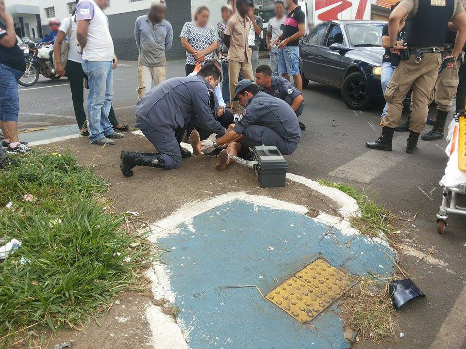 Com o impacto, a condutora P. caiu ao solo e sofreu algumas escoriações na perna direita, queixando-se ainda de dores na coluna.