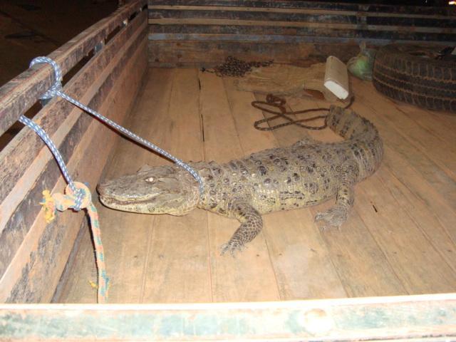 Depois de alguns minutos o Jacaré foi espantado para fora da casa e no quintal da residência foi capturado pelos militares. Roberto Carlos Filho de 31 anos ajudou com uma caminhonete e o animal foi levado para Represa da Zita na zona rural de Lagoa Grande. A suspeita é que o Jacaré de médio porte foi em busca de um abrigo, já que a represa que se encontra seca pegou fogo.