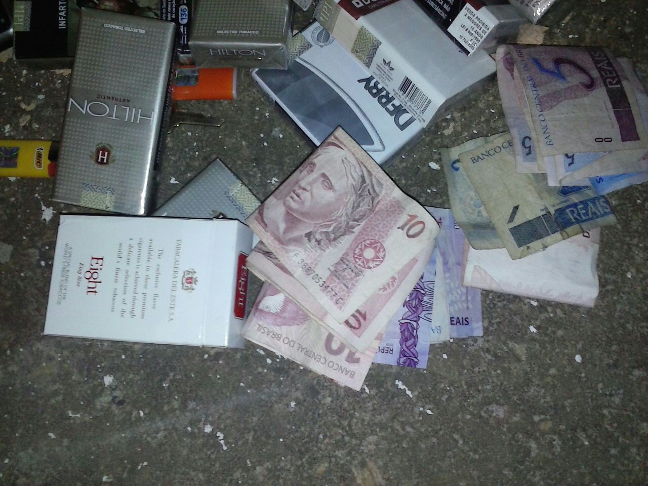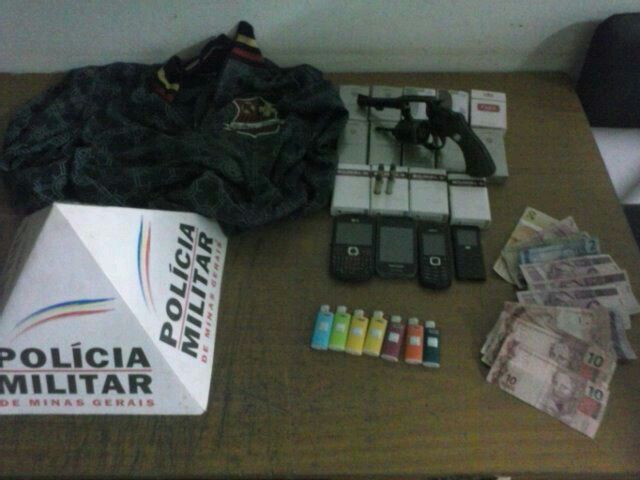 Os assaltantes fugiram a pé pela Rua Afonso Pena sentido a Avenida Altino Guimarães. Os policiais tomaram nota das características dos autores e iniciaram os trabalhos. Durante o rastreamento os militares avistaram um grupo de ipessoas em atitude suspeita em frente o nº 491, da Rua Major Alvim, Bairro Marciano Brandão, quando notaram que no chão próximo aos abordados haviam diversos maços de cigarros, alguns isqueiros e certa quantia em dinheiro.