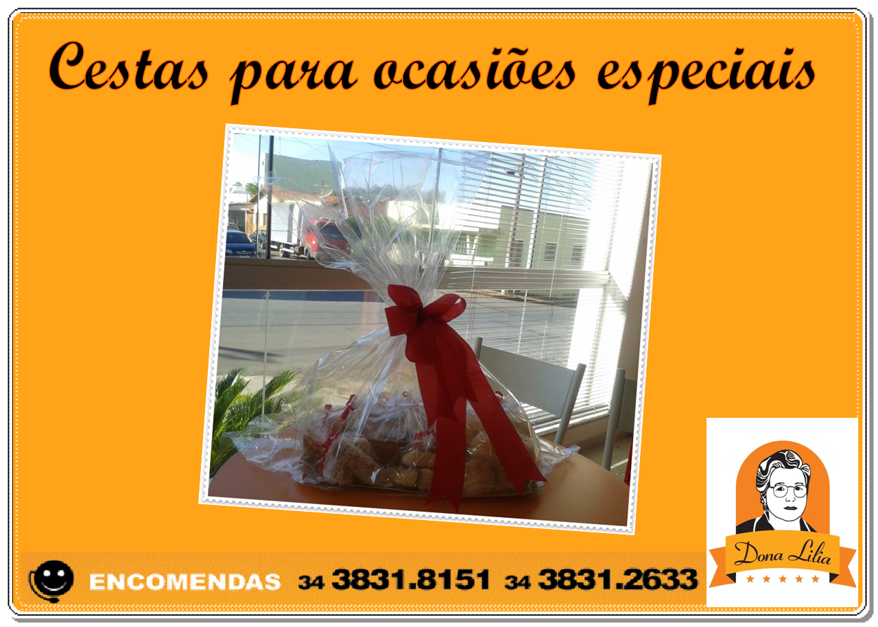Se a ocasião é especial encomenda uma cesta da Casa do Pão de Queijo Dona Lilia. Ligue: (34) 3831--8151 e 2633