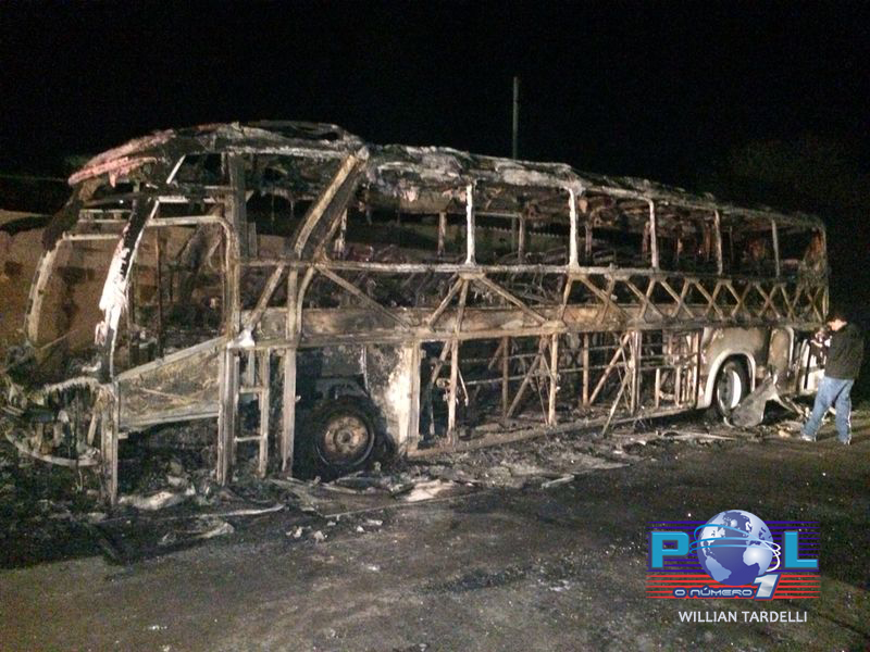O ônibus coletivo foi completamente destruído pelas chamas.