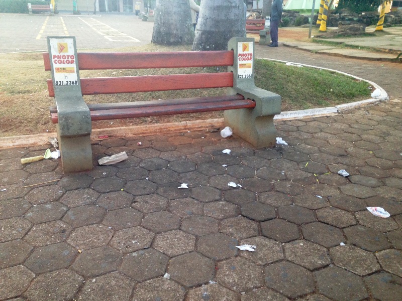 A sujeira provocada pelos "trailler" de lanches funcionando no entorno da praça é outro problema. Soma-se a falta de educação de muitos populares jogarem lixo no chão e a falta de cuidado dos proprietários de também não limparem com esmero ao redor do seu comércio. Neste caso, isente-se os garis, que fazem bem o seu trabalho e com capricho.