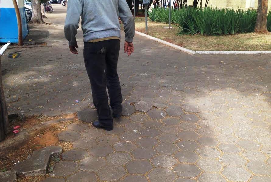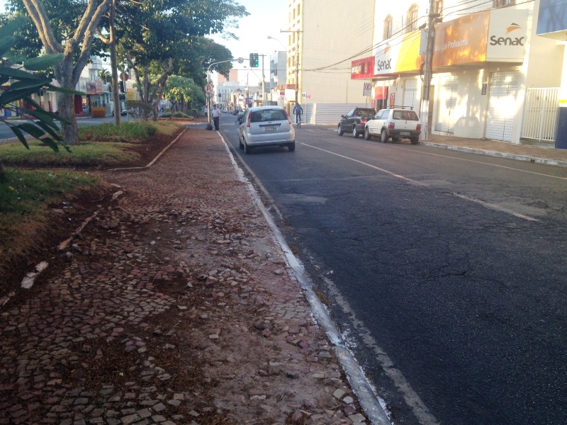 Neste ponto do Calçadão (foto abaixo) na Avenida Rui Barbosa, uma senhora há alguns dias tropeçou e cortou o pé.