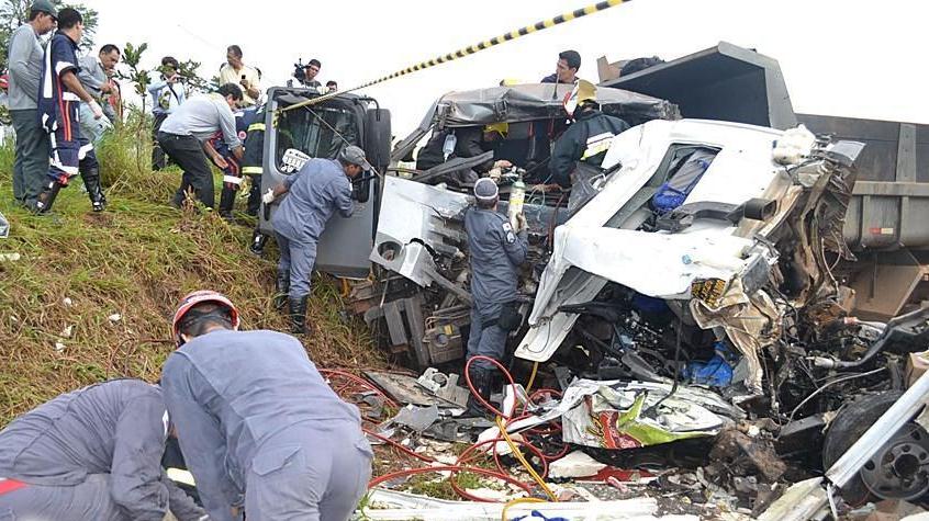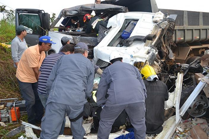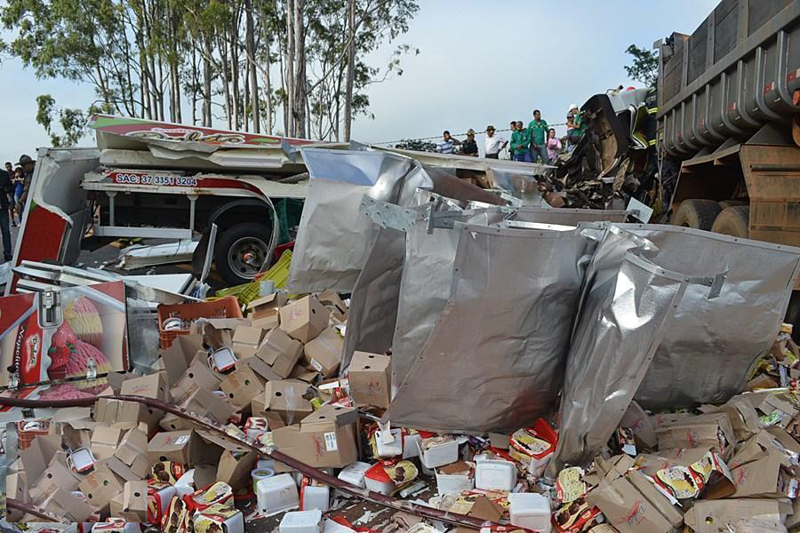 Todos que estavam nos caminhões ficaram presos nas ferragens sendo que o caminhão caçamba estava com a metade do corpo preso entre o banco e o volante. O caminhão de sorvetes ficou completamente destruído devido a batida frontal.