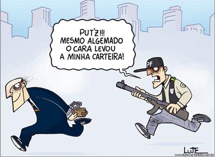Ando com pena dos ladrões em Patrocínio, estão trabalhando muito, tanto que as vezes baratinam a cachola.Um deles cismou que havia deixado algo dentro de minha residência. A casa estava sem ninguém no momento, chamou, chamou, nem pode me esperar, que chegasse para o almoço, tentou por todos os meios arrebentar o cadeiado do portão, pular o muro.Que trabalheira coitado! A ralação do lado de cá, anda braba, atrasei para o almoço.E o amigo do alheio, lá, tentando fazer o seu trabalho (È, eles dizem que é trabalho! Certa vez ao assaltarem um ônibus na região e disseram: “Cooperem, estamos fazendo o nosso trabalho!”) Providencialmente , a minha vizinha passou e notou algo estranho. Ele despistava , fingia amarrar o sapato. A vizinha, chamou logo a Polícia, que daí há cinco minutos chegaram ao local. Ao ver os homens da lei o camano, desconversou, deu miguezinho. Os policiais ali,solicitando minha vizinha, que estava no telefone, que descesse para assinar a ocorrência . “ De jeito nenhum, por que tenho que encará-lo, amanhã estará solto e vai me marcar. Prenda-o, é ele” Nada! A Polícia, deve ter chamado-o de Vossa excelência, pediu desculpas por importuná-lo..Em suma, ladrão para um lado, fazendo o seu trabalho, Polícia por outro. Tempo bom, quando a autoridade policial, descia a borracha, num tipo deste. A lei da “prisão em flagrante,” em voga, protege o ladrão. O cidadão de bem, trabalhador, pagador de impostos, é que se lasca...