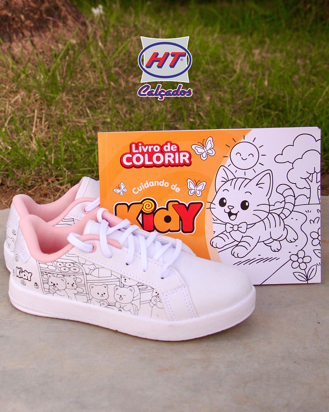 A criança consegue colorir e personalizar seu próprio tênis (que depois deve ser limpo com pano seco).
