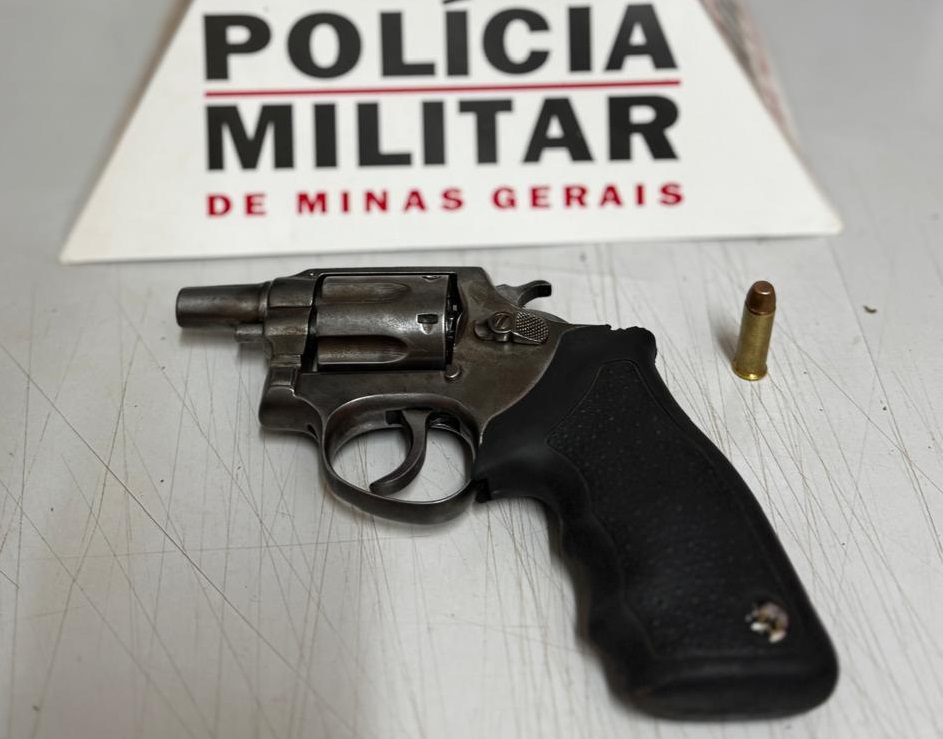 O veículo foi abordado na MG-188, próximo ao trevo da Rocinha, e os policiais, durante buscas, localizaram em seu interior um revólver calibre .38 com uma munição intacta no tambor.