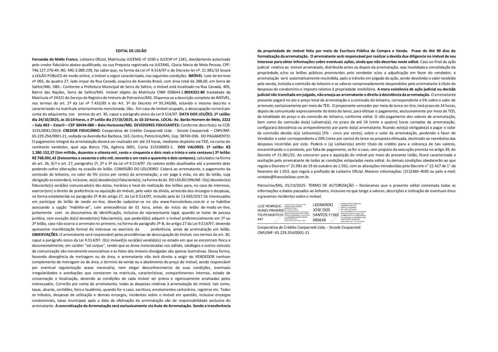 O leilão ocorrerá no dia 24 de outubro de 2025
