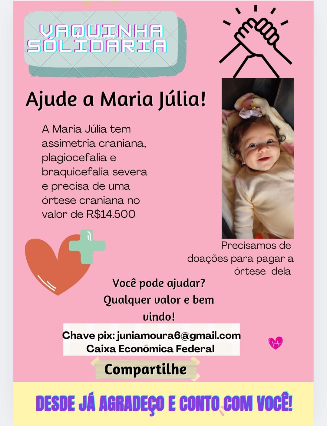 Os familiares de Maria Júlia de 5 meses solicitaram a publicação de um apelo para arrecadar recursos para tratamento.