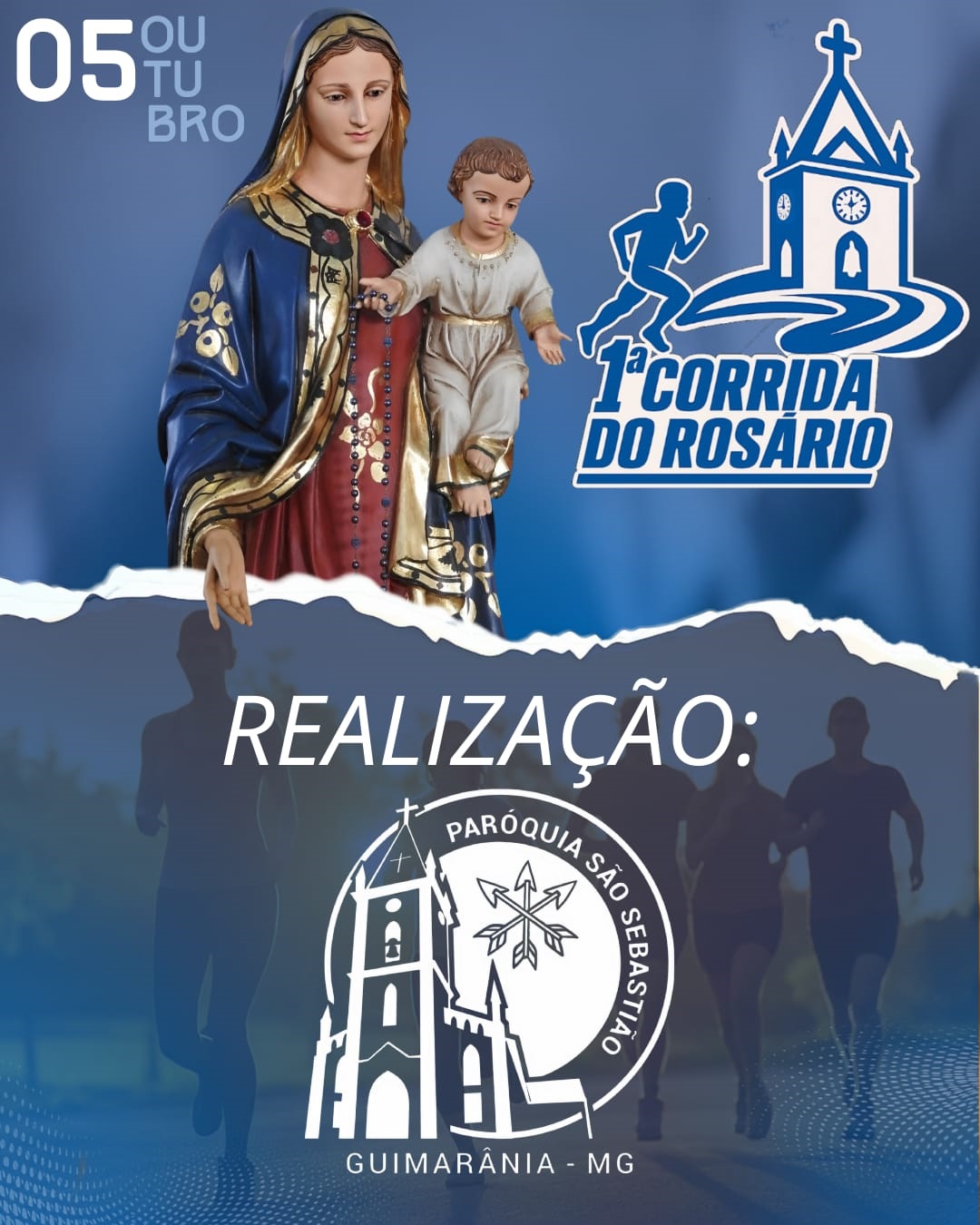 A Paróquia São Sebastião realiza no dia 5 de outubro, a 1ª Corrida do Rosário em Guimarânia (MG). O evento terá um percurso de 5 km, com largada às 8h00min, reunindo corrida e caminhada em um momento que une esporte, saúde e fé.